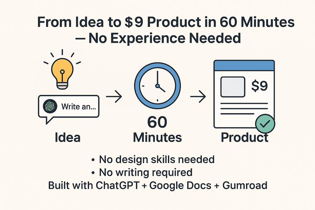 This 10-page guide shows you how to turn a single idea into a $9 digital product using ChatGPT — no writing or design skills needed. Learn how to pick the right topic, generate your ebook in minutes, format it fast, and sell it on Gumroad. Perfect for solopreneurs, side hustlers, and AI-curious creators.